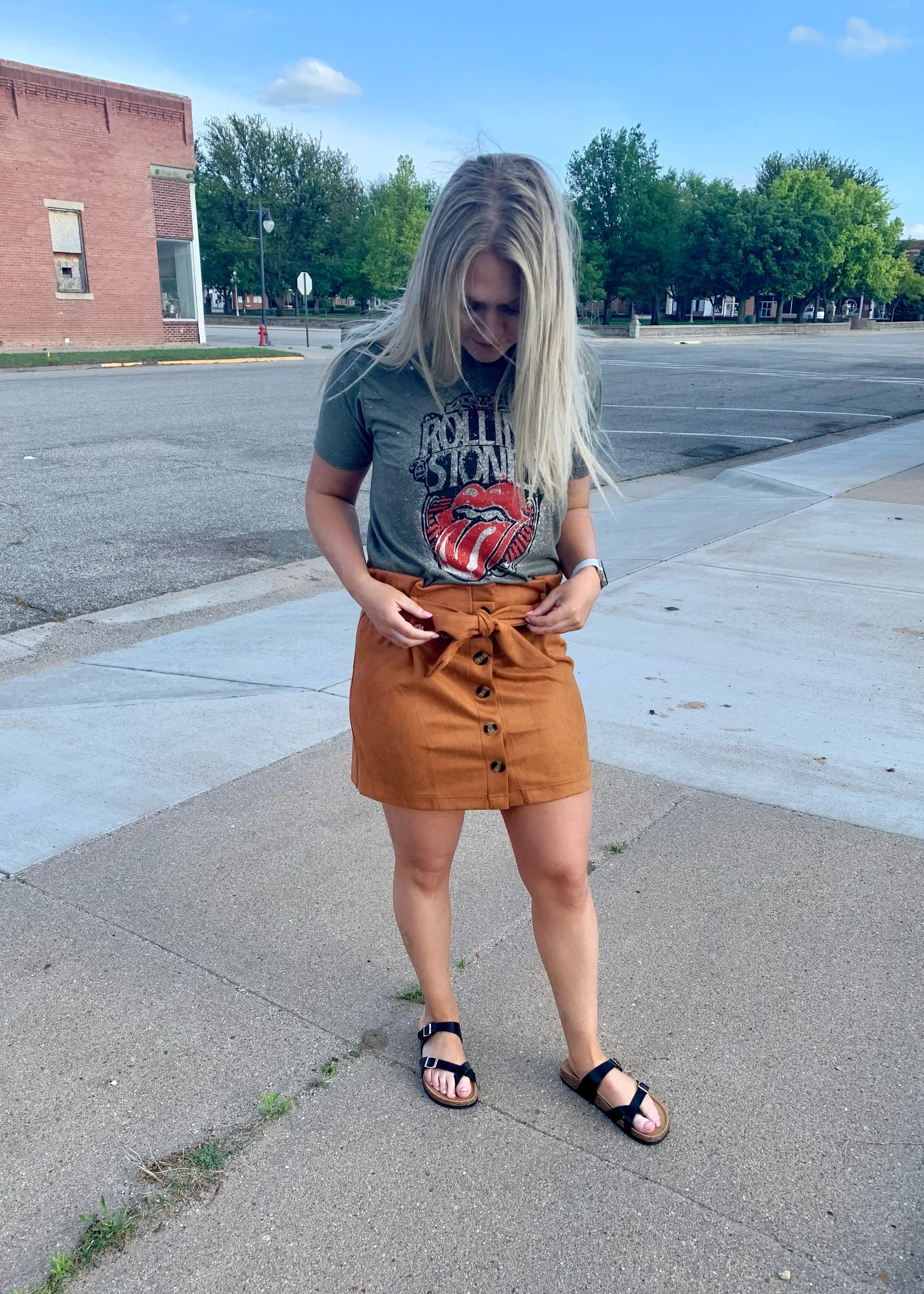 Elastic waist with suede belt