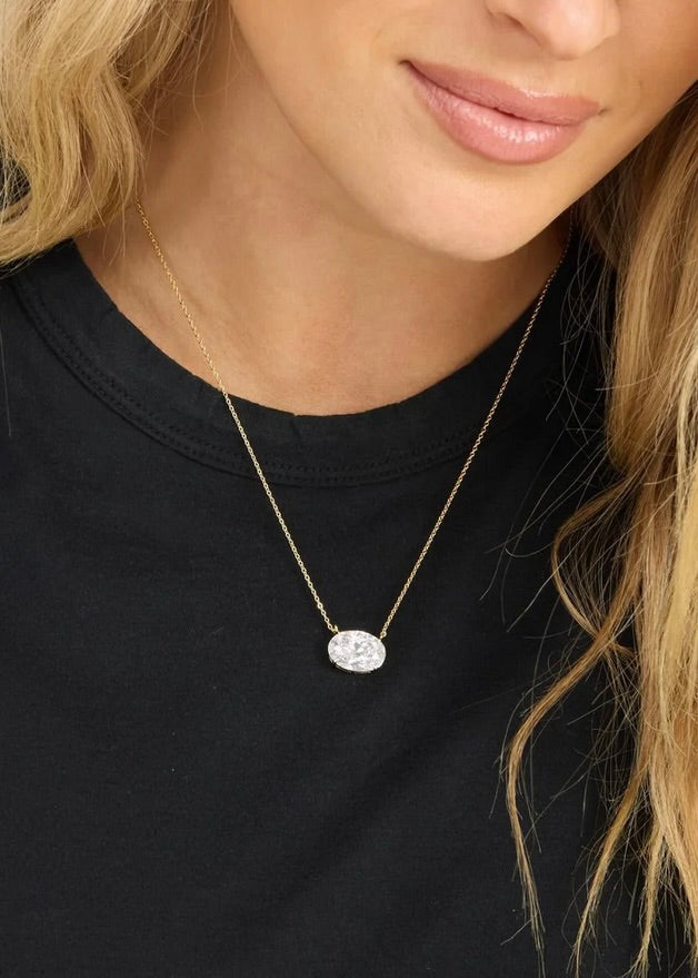 Say "Hello, Gorgeous!" to your new favorite necklace. Featuring a hand-cut oval simulated diamond, this pendant brings main-character energy to your everyday. It’s giving timeless, effortless, and totally irresistible. Wear it solo or layered—we won’t judge if you never take it off.