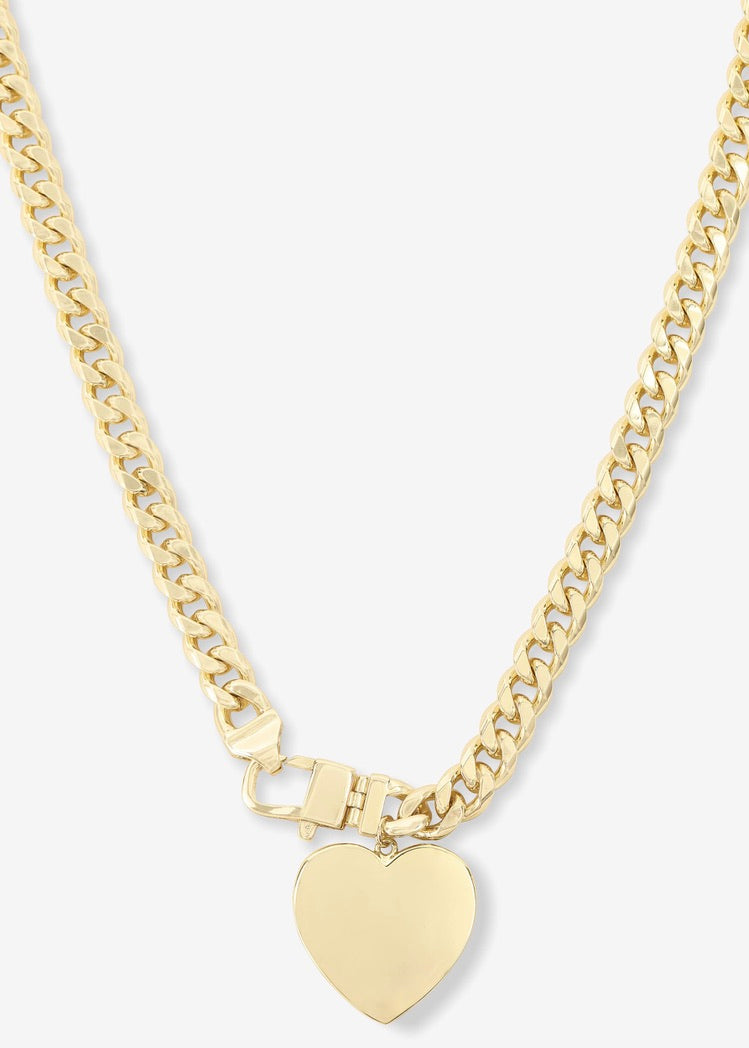 This Cuban Chain Necklace brings the drama with a chunky 7mm chain and a standout 24mm heart charm. Finished with our signature MM padlock clasp, it’s the perfect mix of strong and sweet—made to turn heads and steal hearts.