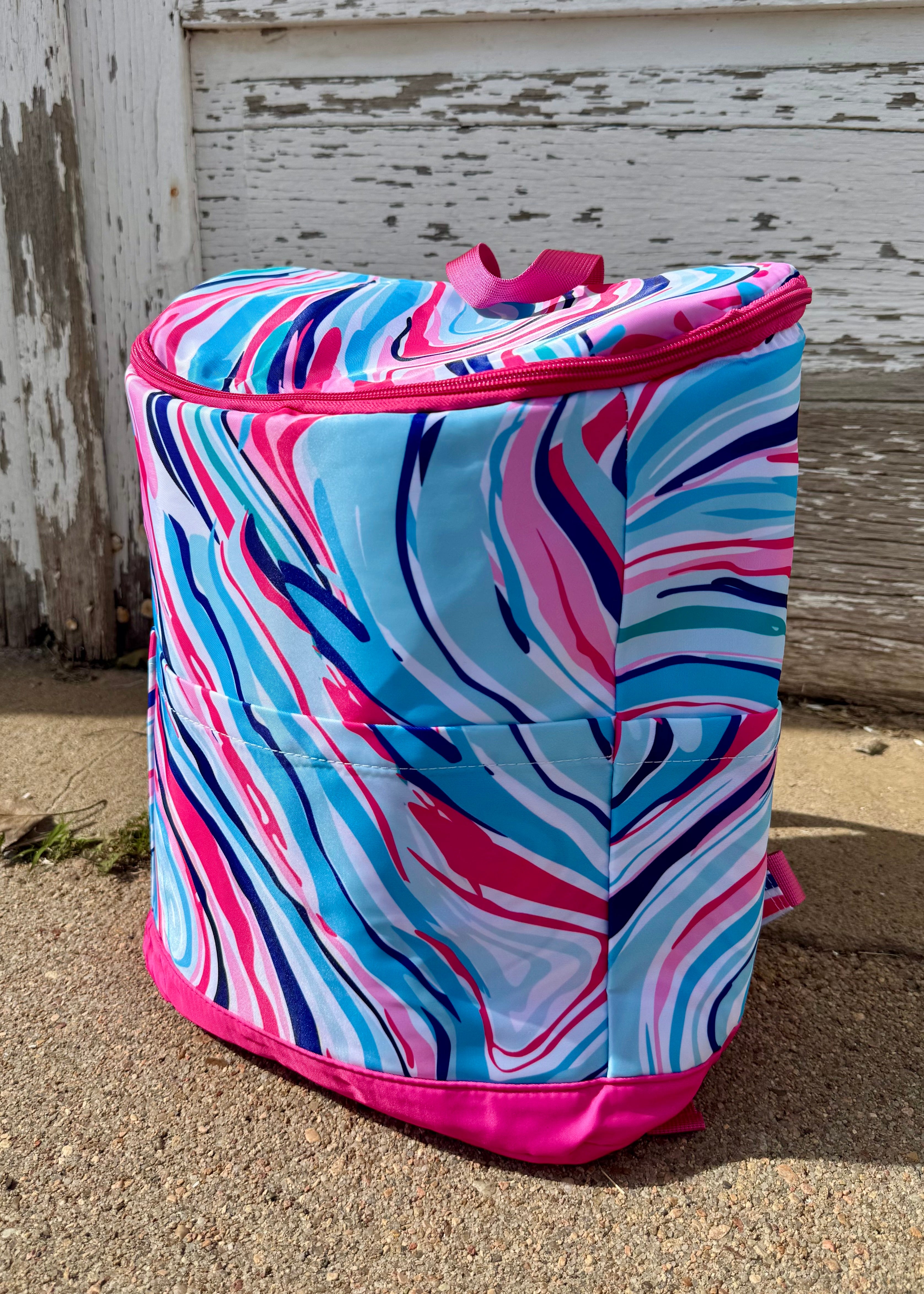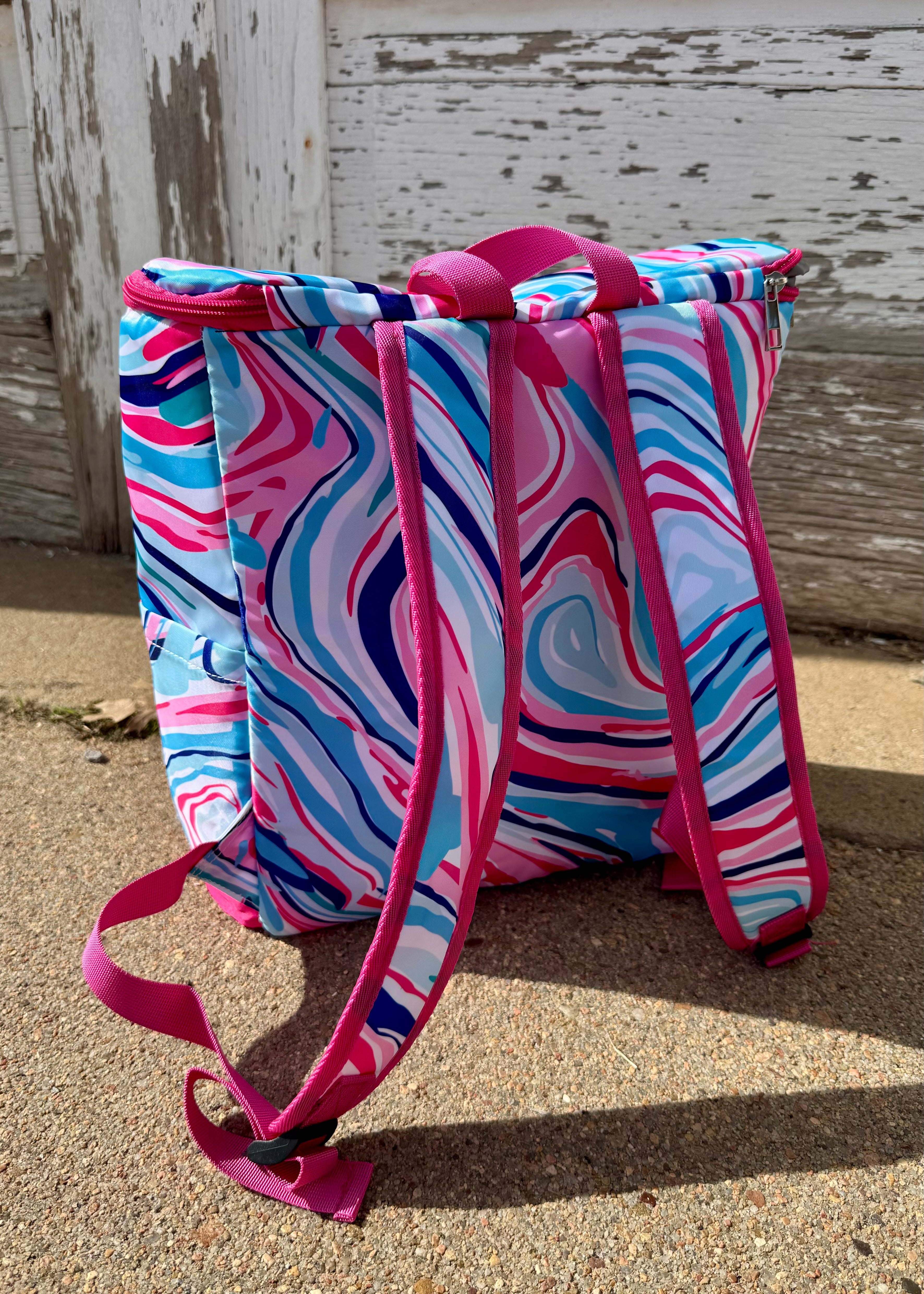 Stay cool in every way 💁🏼♀️ The Marble Cooler Backpack is your new river day MVP—combining bold, fun swirls of pink, blue, and white with the practicality of an insulated cooler compartment. Perfect for river hangs, picnics, or long days at the ball field.