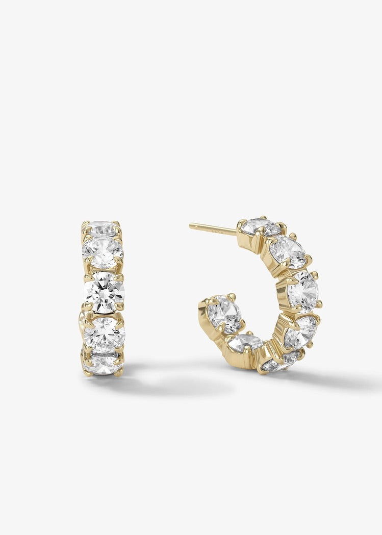 Small but mighty—these .75” hoops pack serious sparkle. Classic with a modern twist, they’re the kind of earrings you’ll reach for daily (and get compliments every time). Bonus: they come with backs, because we’re not here to play games with lost earrings.