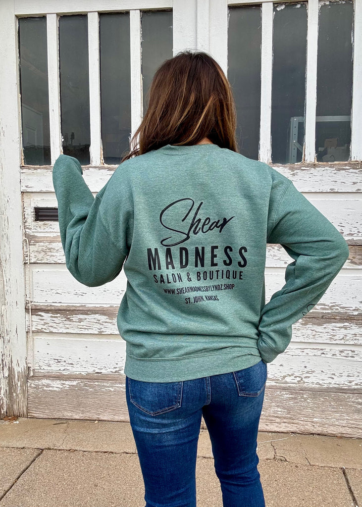 Back: full Shear Madness logo so they know exactly where the magic happens.